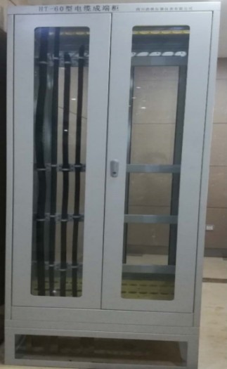 HT-60型电缆成端柜主要用于信号机械室电缆二次成端及电缆有序规范的排列和固定,成端柜的设计和制造满足相关铁路信号工程细部设计和工艺质量标准,其具有生产工艺先进、外形美观、材质强度高、可视钢化玻璃门等特点,满足电缆的稳定、有序排列和固定。成端柜主柜体前后门均为对开玻璃门,可分前,中,后3层固定电缆,每层最多装14根电缆,3层最多42根电缆。